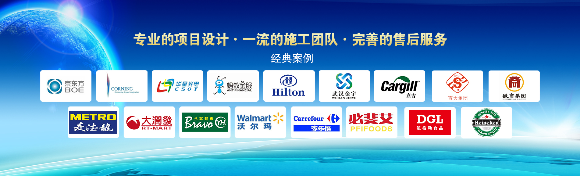 冷凍冷藏設備大型冷庫項目:   武漢中百物流冷庫(40000㎡)、蘇州、北京普洛斯大型物流庫(17000㎡)、沈陽佳德物流冷庫(20000㎡)、上海東航配餐物流庫(6000㎡)、杭州華商勾莊物流冷庫(24000㎡)、安徽安心蔬菜綠色食品冷庫(12000㎡)、武漢金宇冷庫(35000㎡)、必斐艾食品廠(14000㎡)、中國-東盟(百色)農產品交易中心冷庫物流工程(30000㎡)、遵鐵物流冷鏈物流區(qū)建設項目中心冷庫物流工程(16500㎡)、長沙云冷產業(yè)園冷庫物流工程(21000㎡)等;大型中央空調項目:   武漢康寧顯示玻璃廠廠房、武漢京東方模組廠房、武漢華星光電模組廠房、深圳華星光電模組廠房,杭州阿里巴巴辦公樓,舟山波音737機場辦公樓,南京江北能源站、上海金融大酒店等